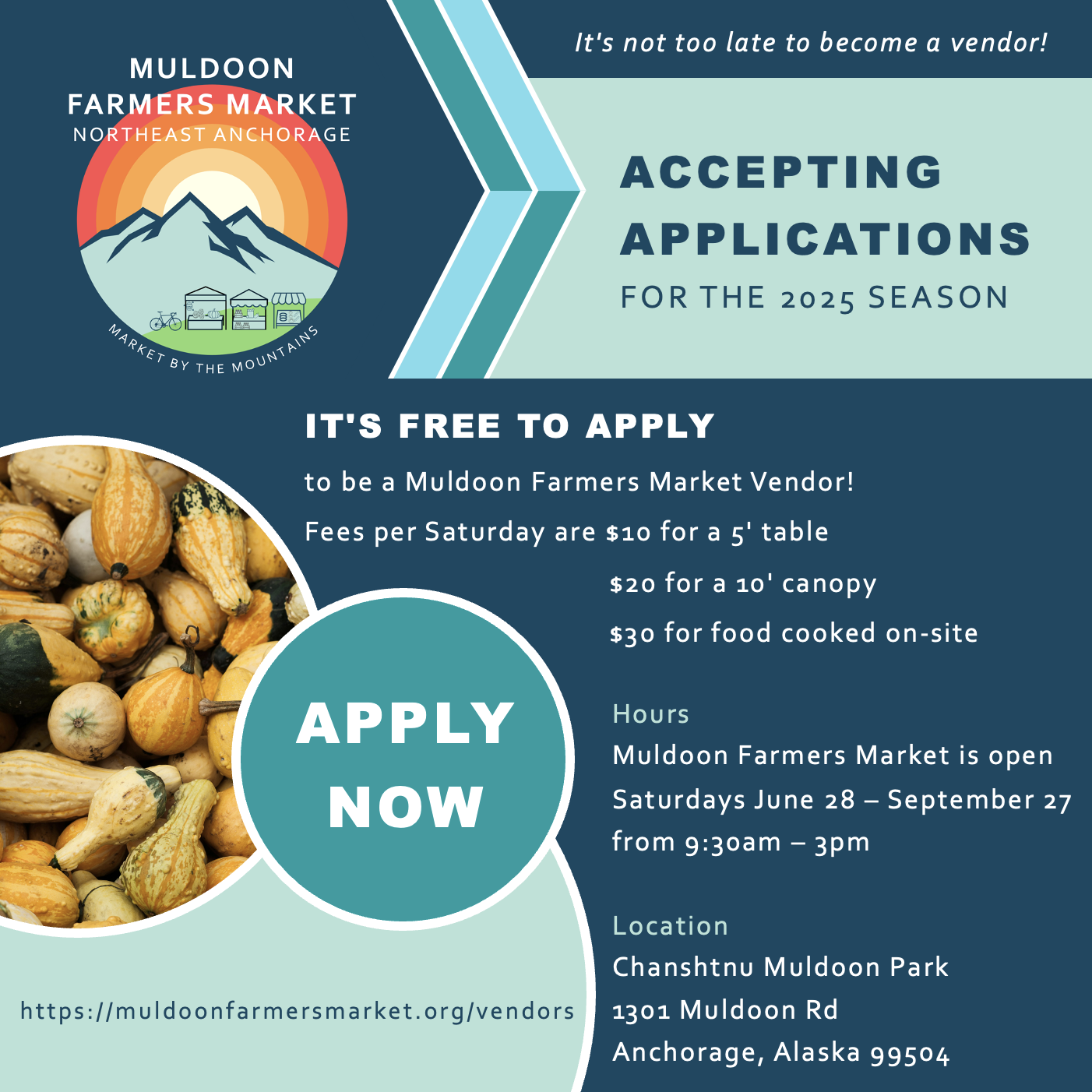 Muldoon Farmers Market is proud to feature a diverse group of farmers, bakers, local artisans, and community organizations. We strive to host vendors that offer fresh, local food and crafts that meet our community’s needs.