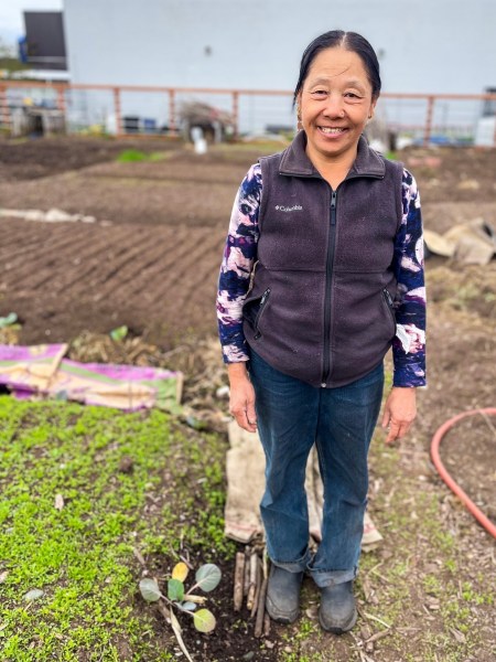 Yazinta, with help from her husband and son George, grow potatoes, onions, kale, greens, sugar snap peas, and other vegetables in Willow, Alaska.